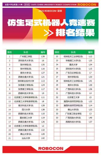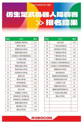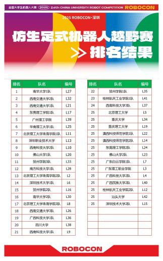 近日,2025年第二十四届全国大学生机器人大赛ROBOCON(深圳赛区)在香港中文大学(深圳)圆满落幕。广州理工学院GLD机器人战队凭借卓越的技术实力与出色的临场发挥,从全国42支强队中脱颖而出,勇夺四项一等奖、两项二等奖,更首度参赛即包揽仿生足式机器人“竞速、越野、障碍”三项一等奖、全能奖以及大疆教育基金仿生足式赛事精英奖,实现William威廉官网在该顶级赛事中的历史性跨越!