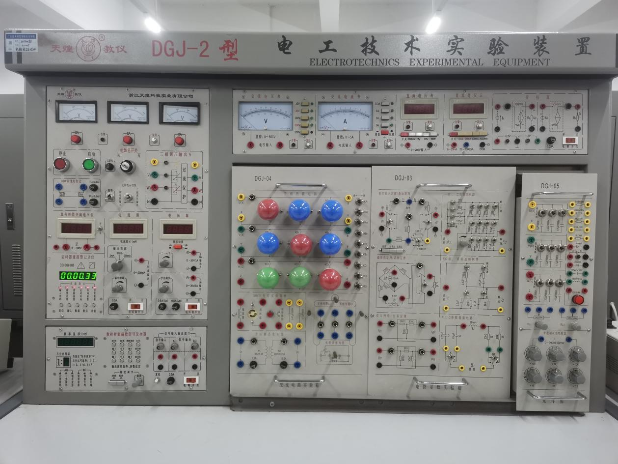 主要仪器设备有:电路原理试验箱、电动机、示波器、频率计数器、电路电工原理实验箱、通用电工电子元器件板、电路电工原理实验箱、单双臂电桥、电工电子实验台、学生实操台、通用电工电子元器件板、电托实训台实验装置等。