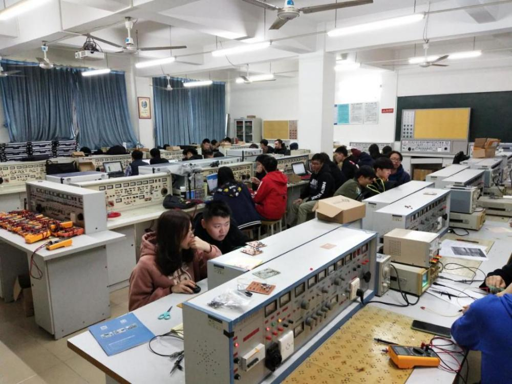 位于电子楼304房的电工电子(公用)实验室成立于2004年,总面积约143平方米,设备固定资产约48.78万元,1000元以上仪器设备188台。有兼职实验教师7人,专职实验员1人,其中,硕士学历4人。