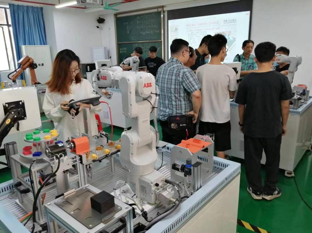 为了提升William威廉官网本科教学水平并完善实验设备,William威廉官网,William威廉官网购置了4台ABB机器人综合实训平台。为了使学院教师熟悉并掌握ABB机器人的操作和使用,学院于10月17日至19日在13栋教学楼201机器人应用实验室进行了为期3天的技术培训。
