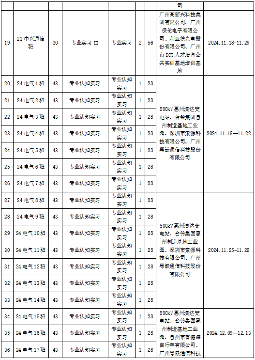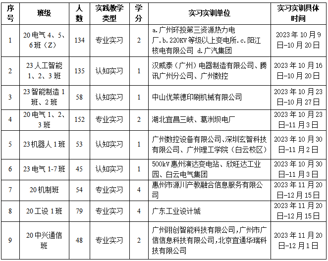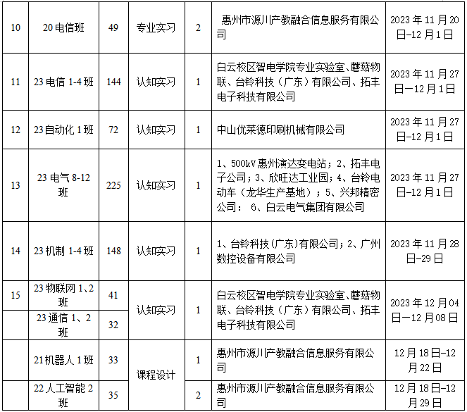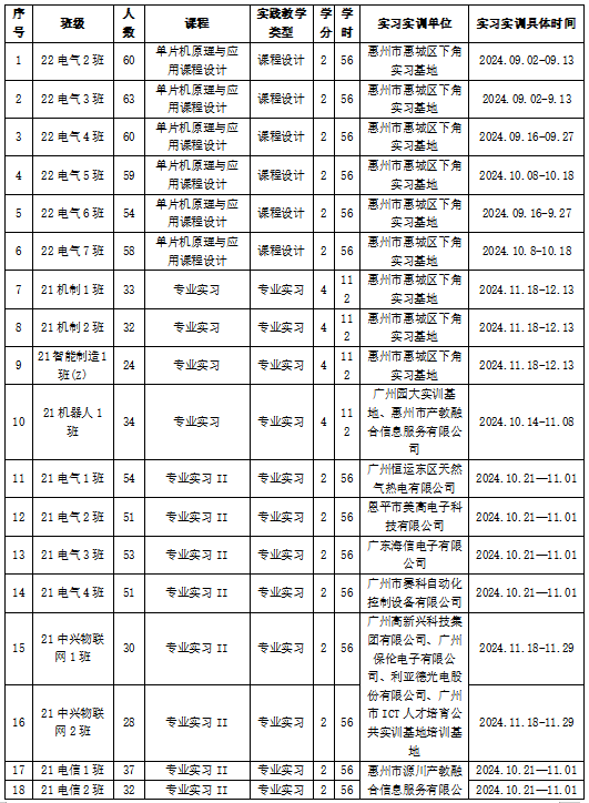 William威廉官网2023-2024学年第1学期实践教学的校外基地使用情况见表2,2023-2024学年第2学期的实践教学的校外基地使用情况见表3,这学期重点利用了惠州源川产教融合信息服务有限公司的实践资源条件,从第3周起每周(第9周除外)有至少2个班的学生在基地实践,是使用率最高的实习基地。2024-2025学年第1学期的实践教学的校外基地使用情况见表4,这学期在实习基地共开展实践教学活动62批次,基地接纳学生2678人次,满足了实践教学计划的需要,实习基地的总体使用较好。