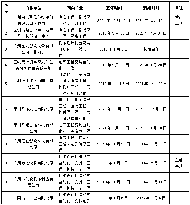 学院现有签订校企合作或实习基地协议的校外实习实训基地有27家(见表1),适合专业覆盖学院全部7个专业,能够满足人培方案规定的实践环节的教学任务。