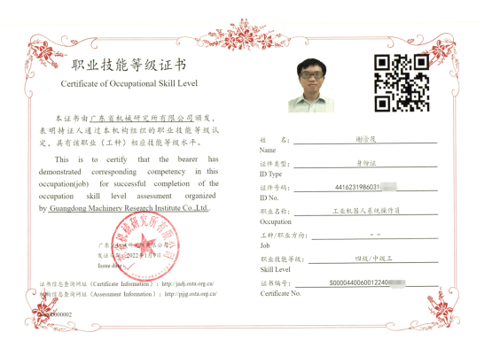 可进行工业机器人系统运维员(四、三、二、一级)认定考核。