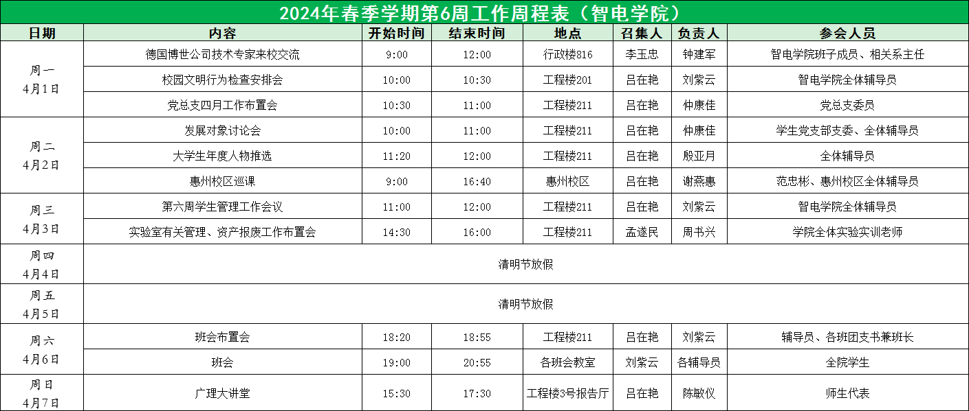 2024年春季学期第6周工作周程表