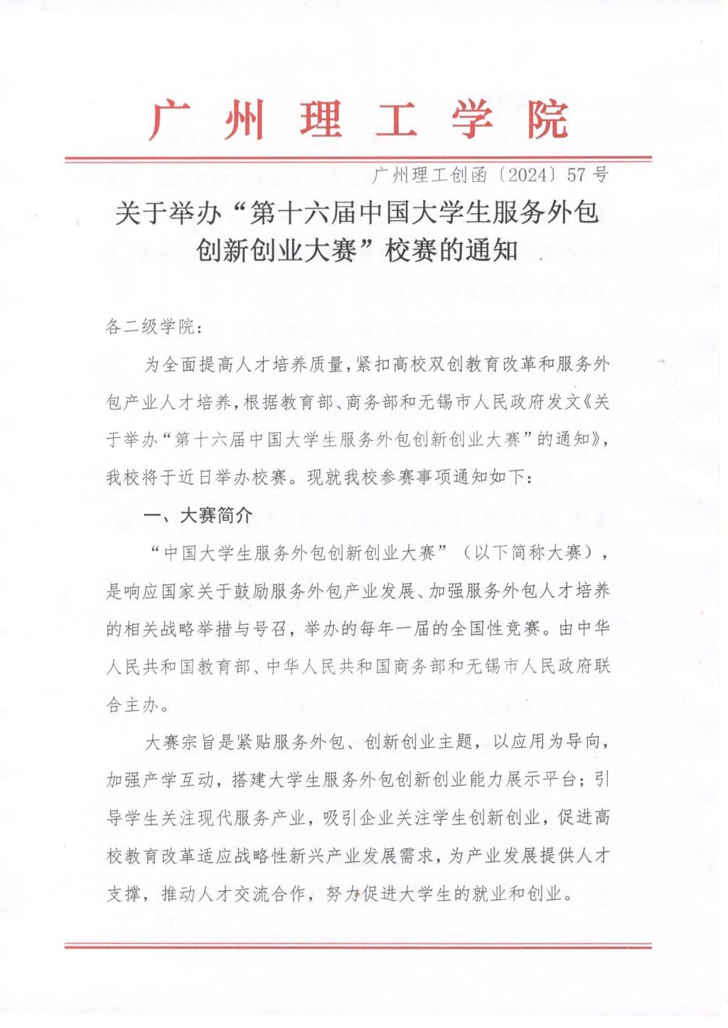 关于举办“第十六届中国大学生服务外包创新创业大赛”校赛的通知