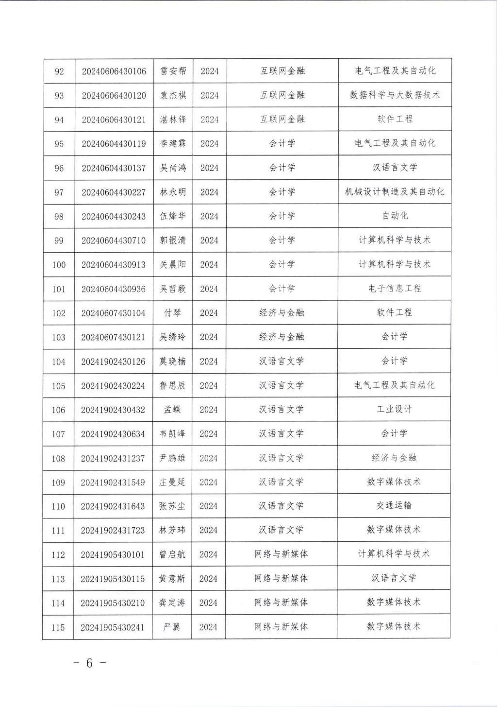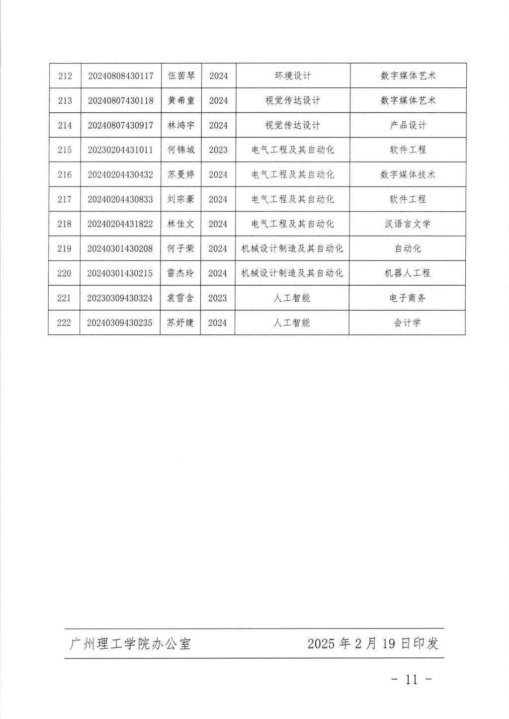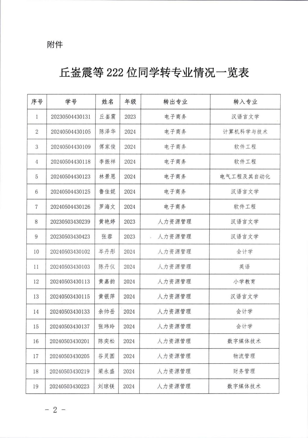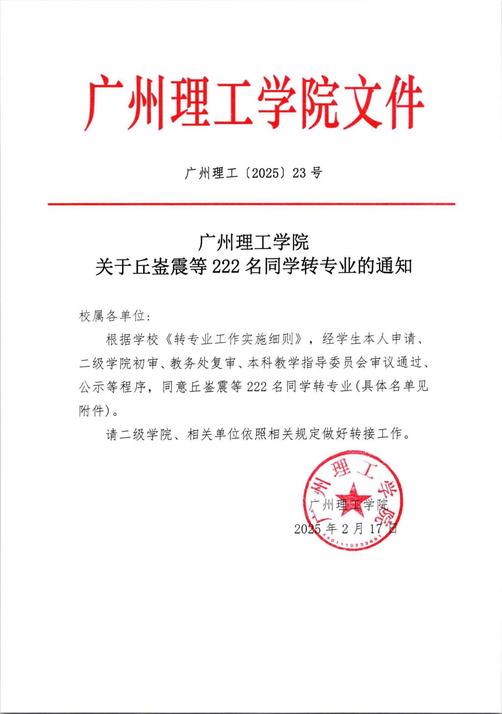 关于丘崟震等222名同学转专业的通知
