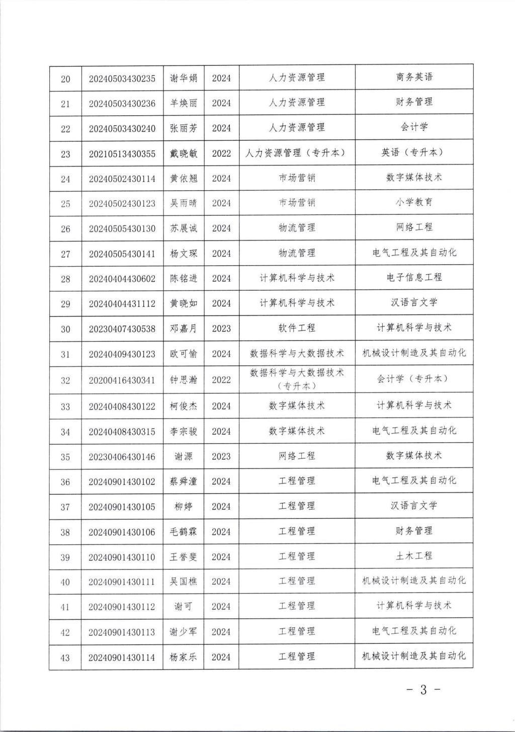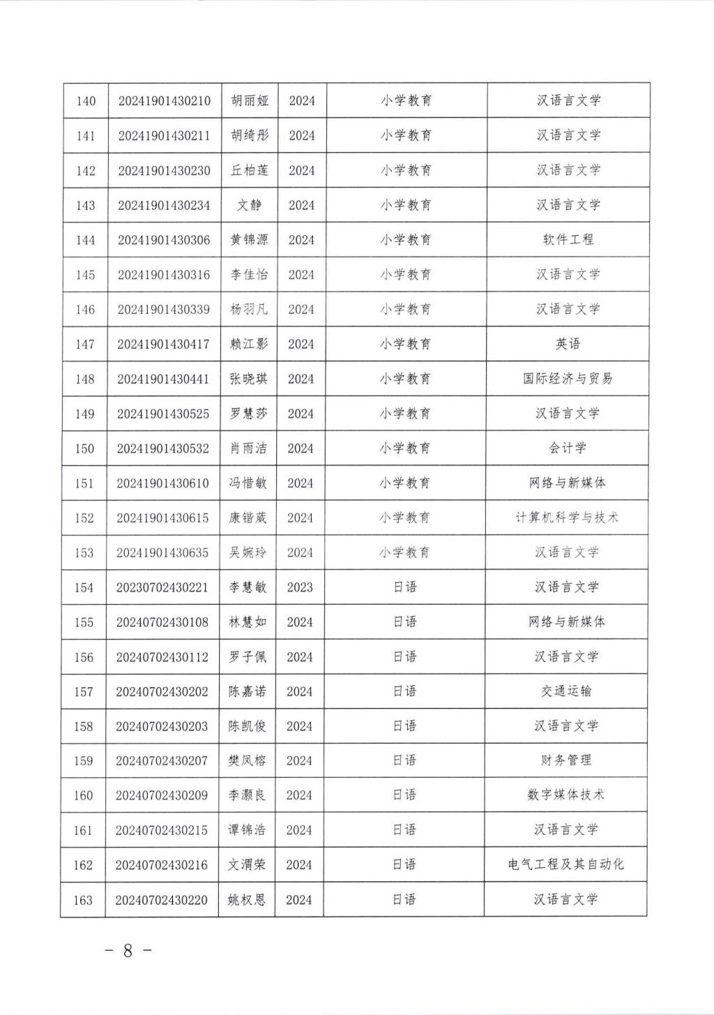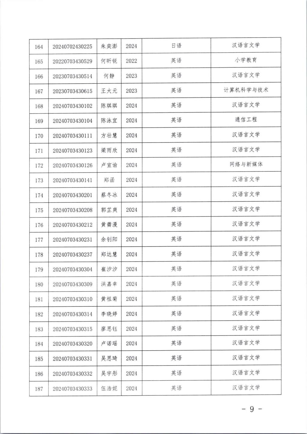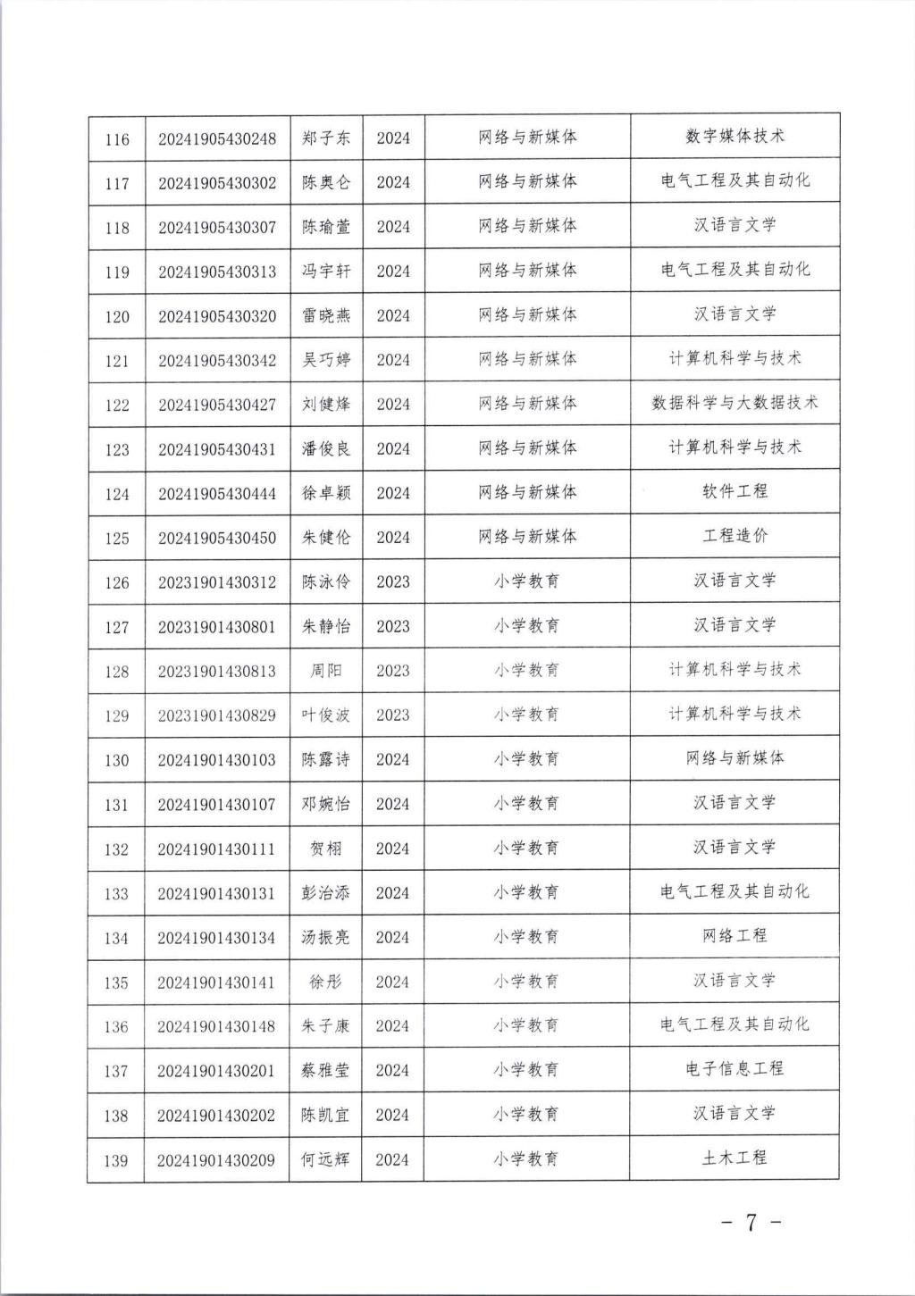 关于丘崟震等222名同学转专业的通知