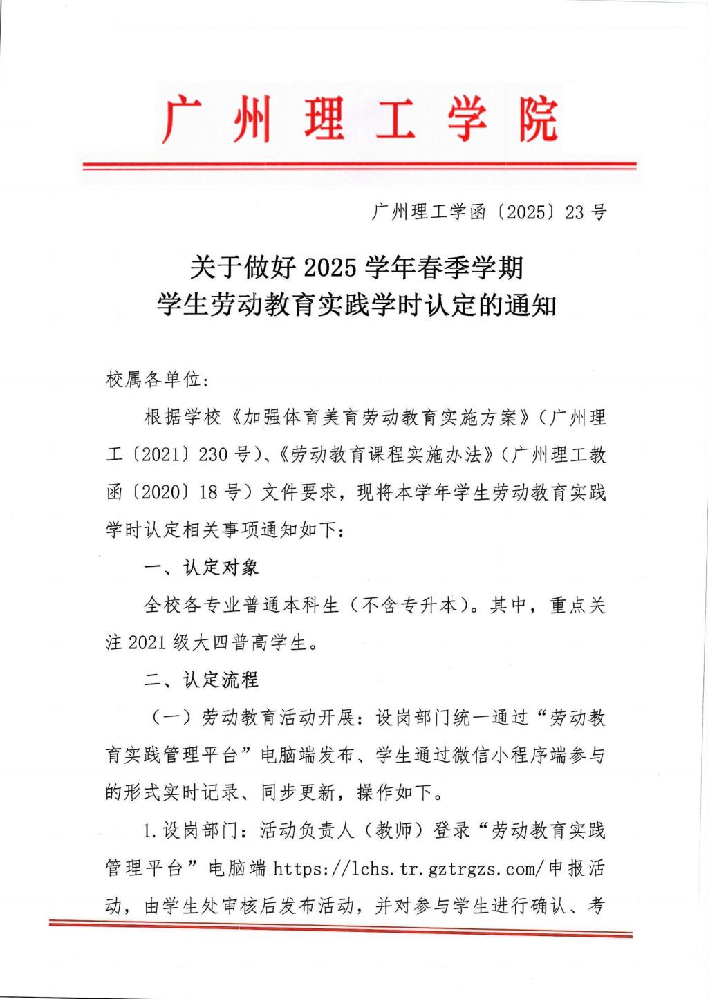 关于做好2025学年春季学期学生劳动教育实践学时认定的通知