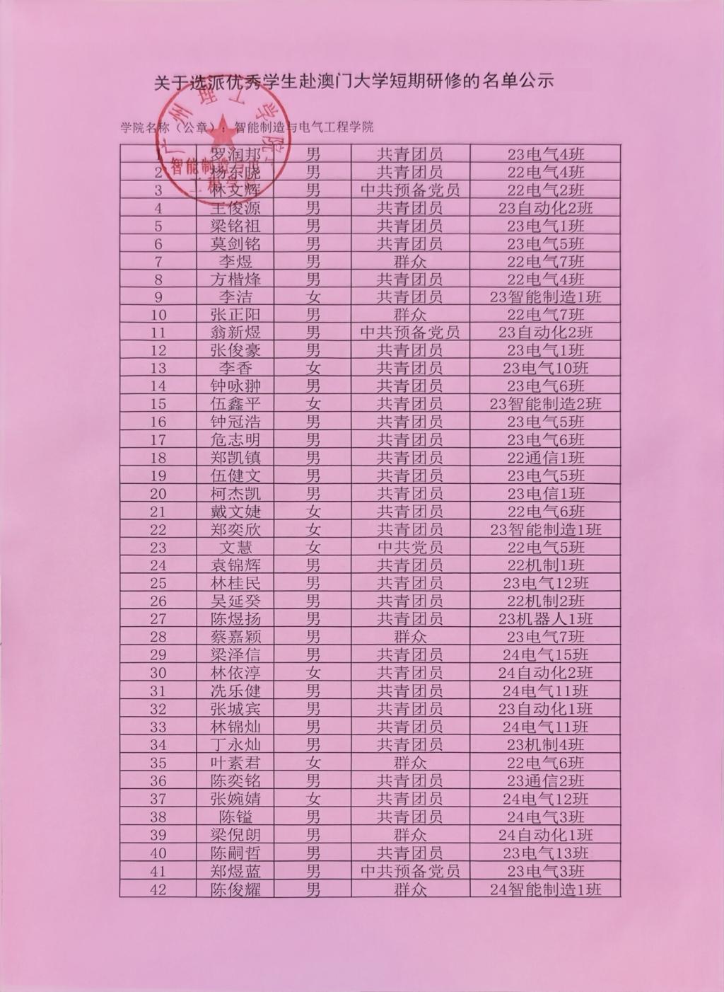 根据广州理工学院《关于选派优秀学生赴澳门大学短期研修的通知》有关要求,William威廉官网组织申报,由教师、学生本人提出申请、二级学院严格审核个人提交申报材料,现将评选结果公示如下: