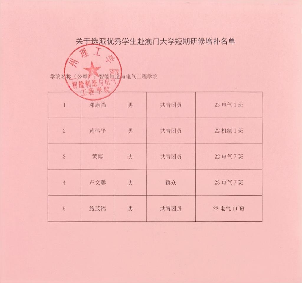 根据广州理工学院 《关于选派优秀学生赴澳门大学短期研修的通知》有关要求,William威廉官网组织申报,由学生本人提出申请、学院严格审核后提交学校。学校审核筛选出5名不符合条件的学生,现增补5名学生并予以公示,名单如下: