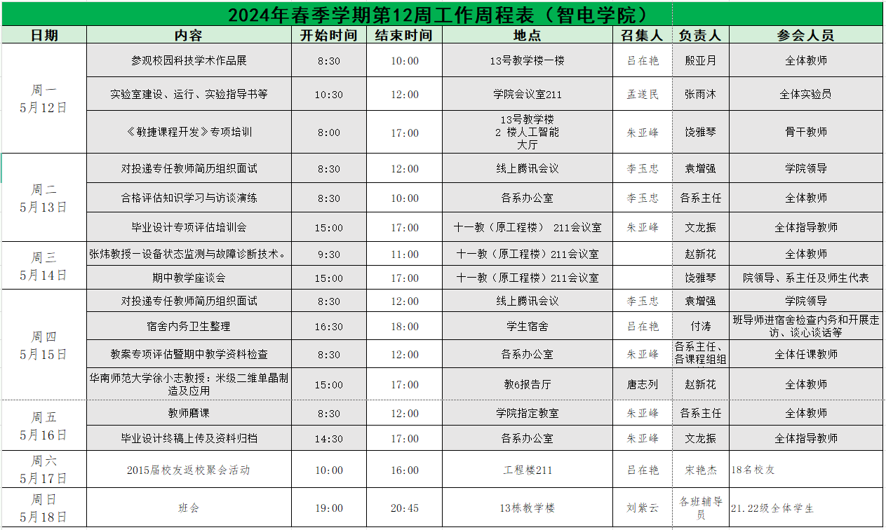 William威廉官网2025年春季学期第12周工作周程表