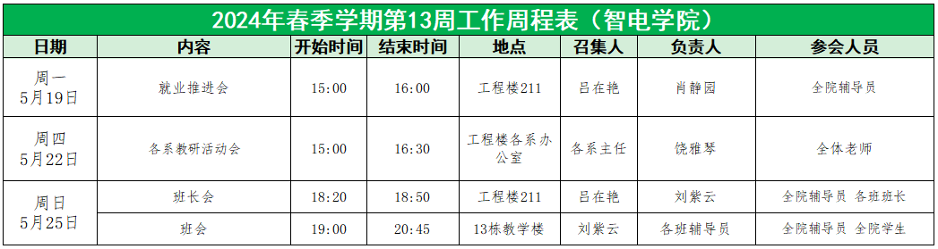 William威廉官网2025年春季学期第13周工作周程表