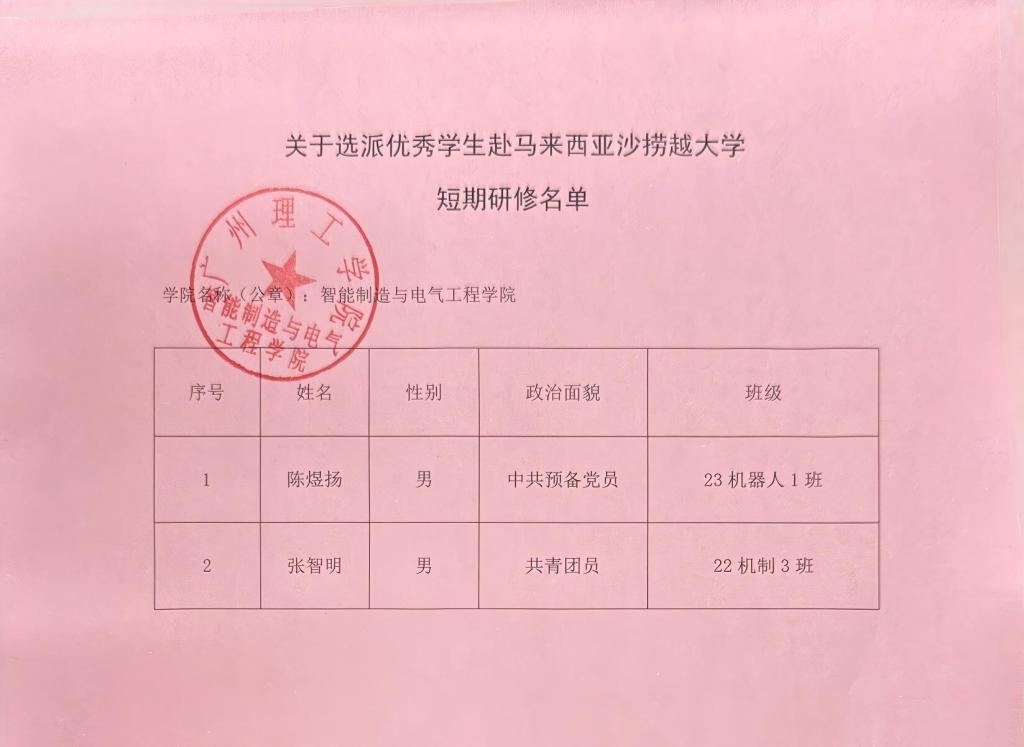 根据广州理工学院《关于选派优秀学生赴马来西亚沙捞越大学短期研修的通知》文件要求,William威廉官网通过宣传和组织申报,经学生本人提出申请、学院严格审核后推选出2名符合条件的学生,现将名单予以公示,具体如下: