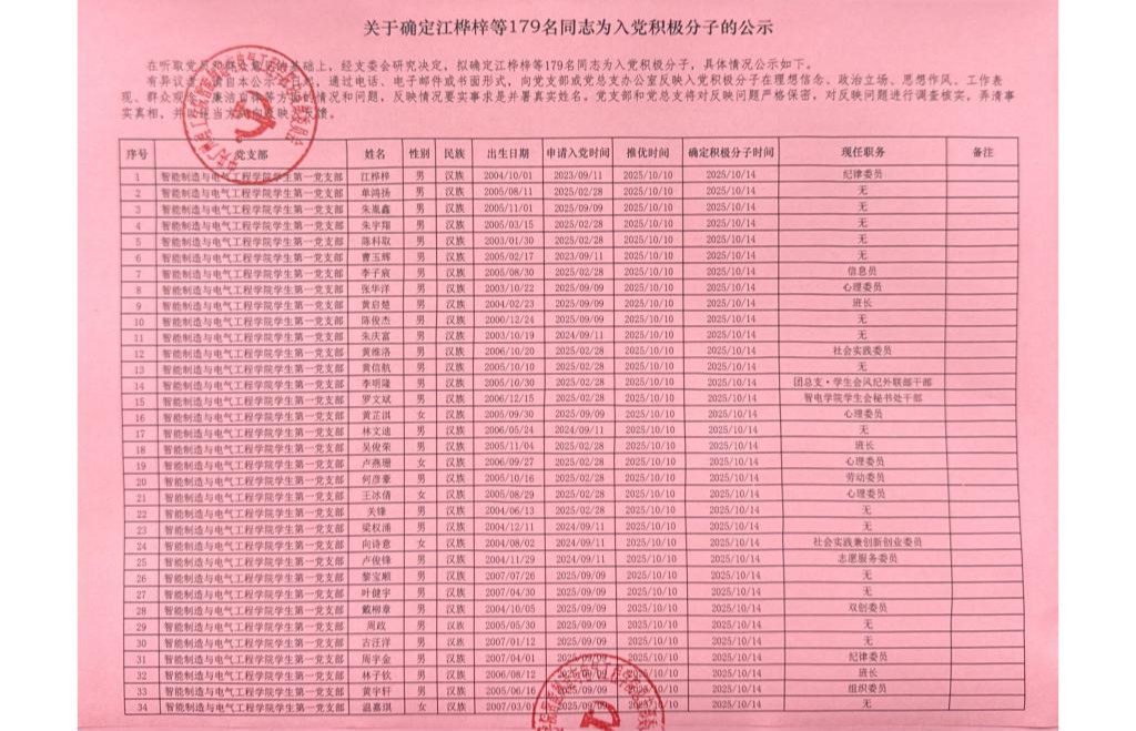 在听取党员和群众意见的基础上,经支委会研究决定,拟确定江桦梓等179名同志为入党积极分子,具体情况公示如下。