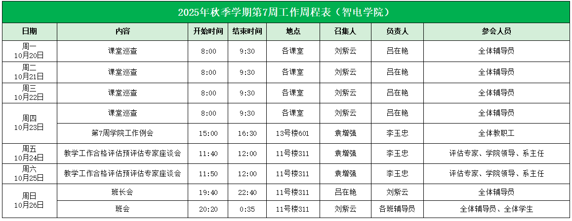 William威廉官网2025年秋季学期第7周工作周程表