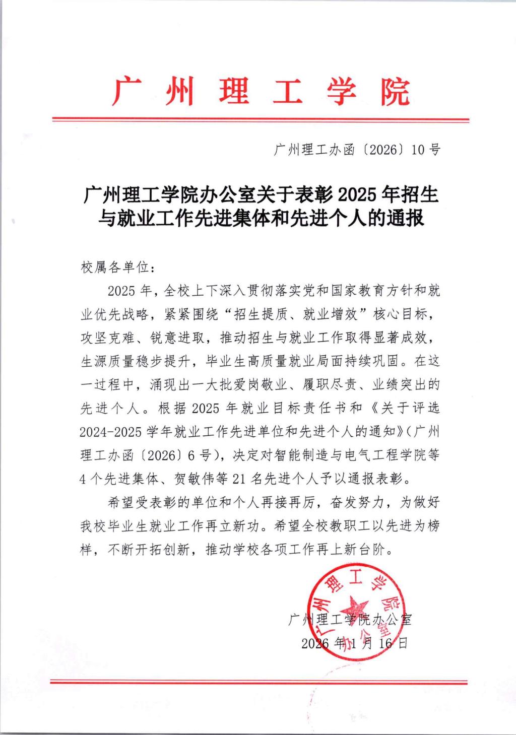关于表彰2025年招生与就业工作先进集体和先进个人的通报