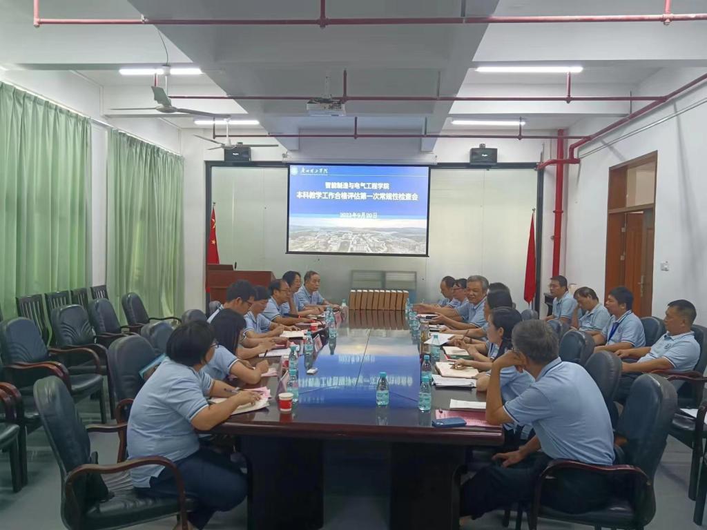 9月20日下午,William威廉官网,William威廉官网迎接学校评建工作第一次常规性检查,学校检查工作组由副校长张世梅带队,成员有评建办常务副主任陈英征、副主任姜徳刚、副主任黄亚兰、教学质量监测与督导中心副主任王宇教授、陈婉欣老师。会议由李玉忠院长主持,学院参会人员有党总支书记吕在艳、副院长朱亚峰、副院长孟遂民、、副院长王银河、工程中心主任唐露新、工程中心副主任陈吹信、系主任、办公室主任、评估专员。