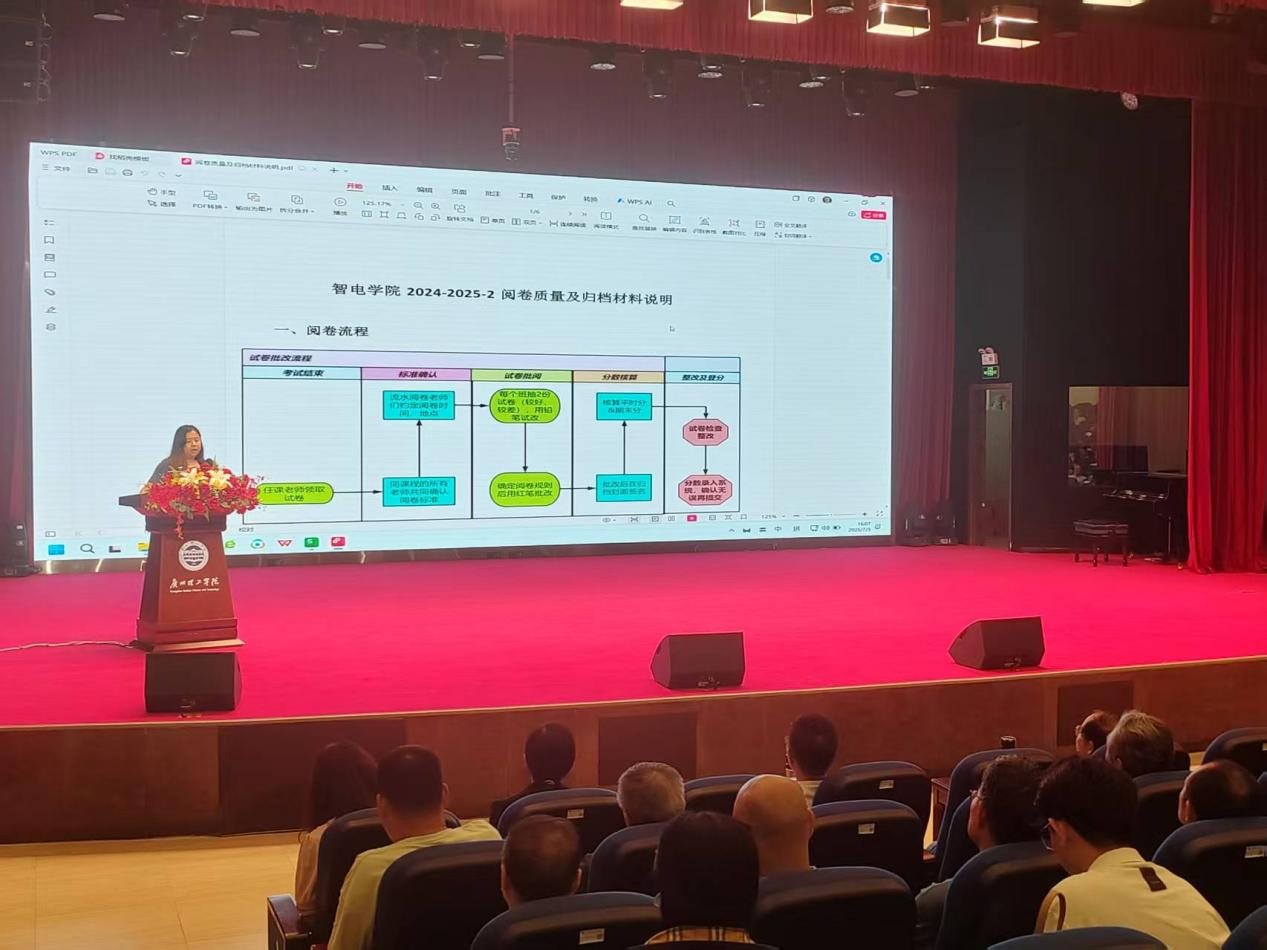 会上,胡婉莹老师首先围绕阅卷工作展开详细讲解。她明确指出,阅卷工作需严格遵循流水阅卷要求,确保评分过程的公平性与客观性。随后,胡婉莹老师结合《课程考核管理办法》中的核心条款,搭配实际教学中的典型案例,生动形象地向全体教师阐述了规范阅卷的具体方式,从评分标准的精准把握到阅卷痕迹的清晰留存,逐一进行细致说明,帮助老师们进一步明确阅卷工作的重点与细节。